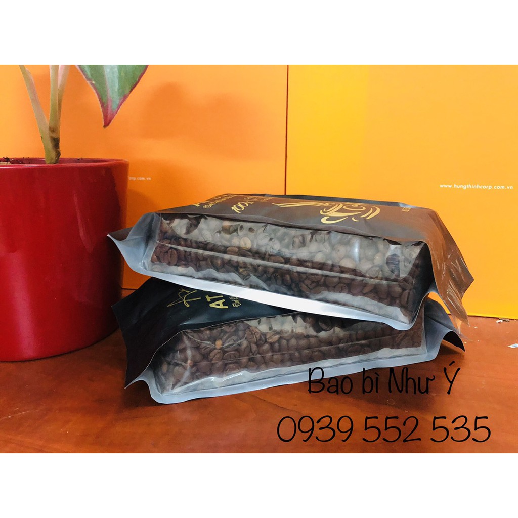 [1kg/size] túi 4 cạnh đen - hông trong, dùng đựng bột, hạt, cafe
