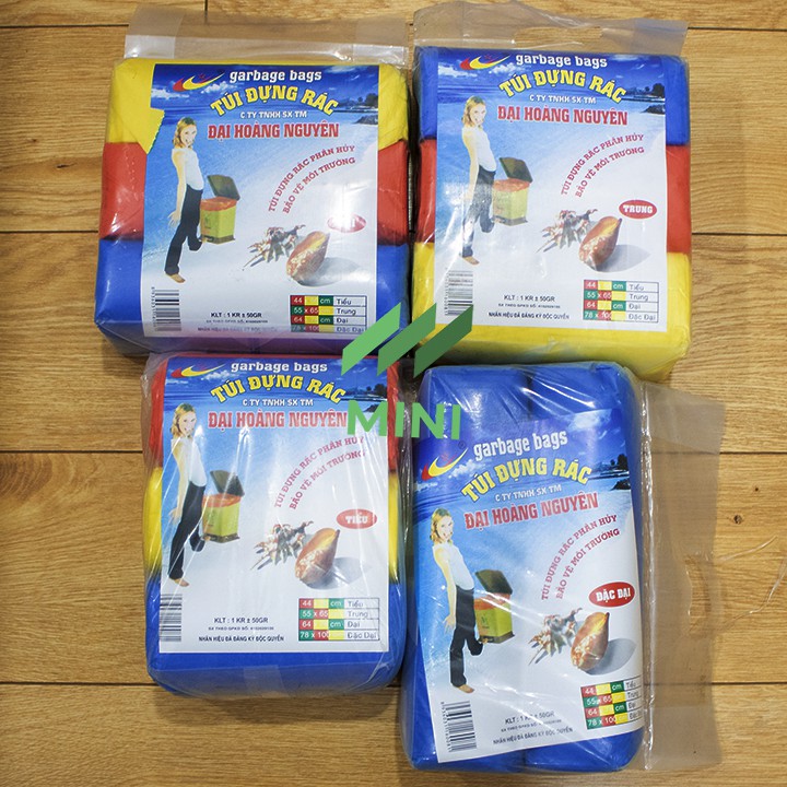 🗑 1kg Túi đựng rác tự hủy sinh học được đóng gói theo dạng cuộn với nhiều kích thước, phù hợp nhiều yêu cầu sử dụng của khách hàng: