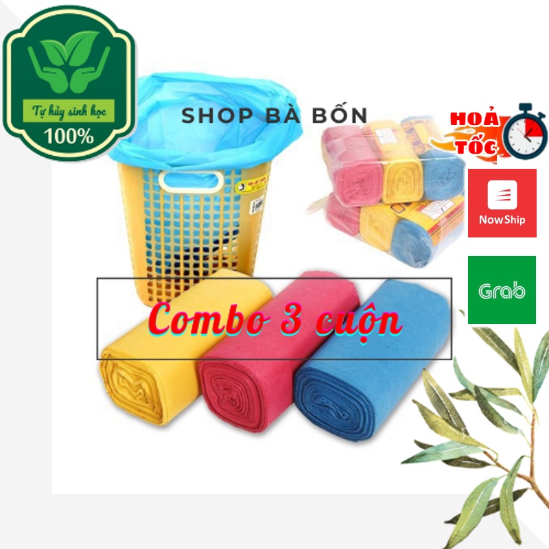Túi đựng rác cuộn 3 màu, thân thiện với môi trường, dễ dàng dử dụng, loại bao rác dễ tự phân huỷ