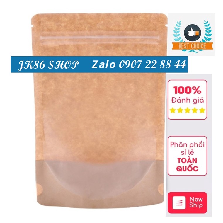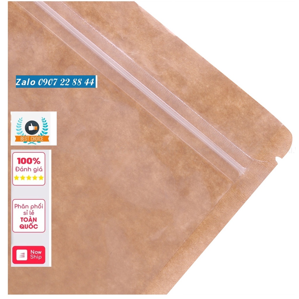 Túi zipper đáy đứng, một mặt trong, một mặt giấy.- Chất liệu giấy nhập khẩu từ Nhật Bản, phù hợp tiêu chuẩn an toàn vệ sinh thực phẩm.