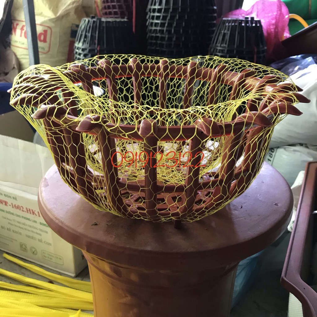 - Lưới được dùng để bao chậu trồng hoa lan tránh việc rơi vãi giá thể.