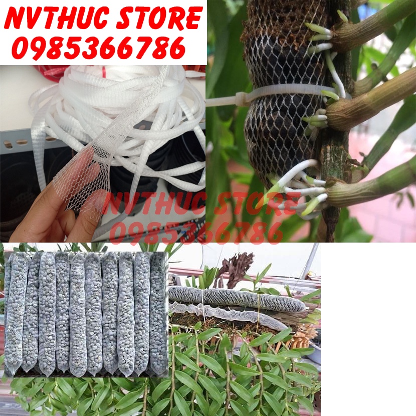 Túi lưới để đựng tỏi, bọc hoa quả, đựng phân tan chậm, phân tan chậm, Túi lưới đựng phân hữu cơ như: Phân dê, bò, cá, phân vi sinh dạng nén tan chậm để trên chậu cây, hoa, giò lan... để khi tưới nước phân không bị rơi ra, vẫn ngấm từ từ để bồi bổ cho cây mà chịu đựng được thời tiết nắng mưa cả năm.1kg được khoảng 250m lưới.
