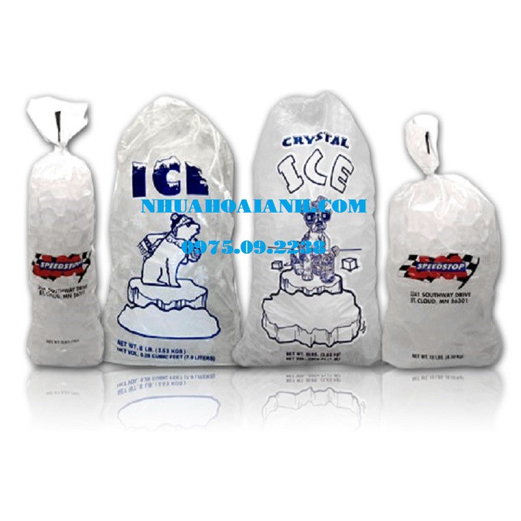 túi trơn ko in- 1kg tầm 110 túitúi đựng đá sạch, túi đựng đá viên có in thương hiệu của các cơ sở sản xuất sẽ giúp quảng cáo xưởng của bạn đến người tiêu dùng nhanh chóng. Túi đá viên 5kg có chất liệu pe trong, rất dẻo và dai phù hợp để đựng đá viên tinh khiết.
