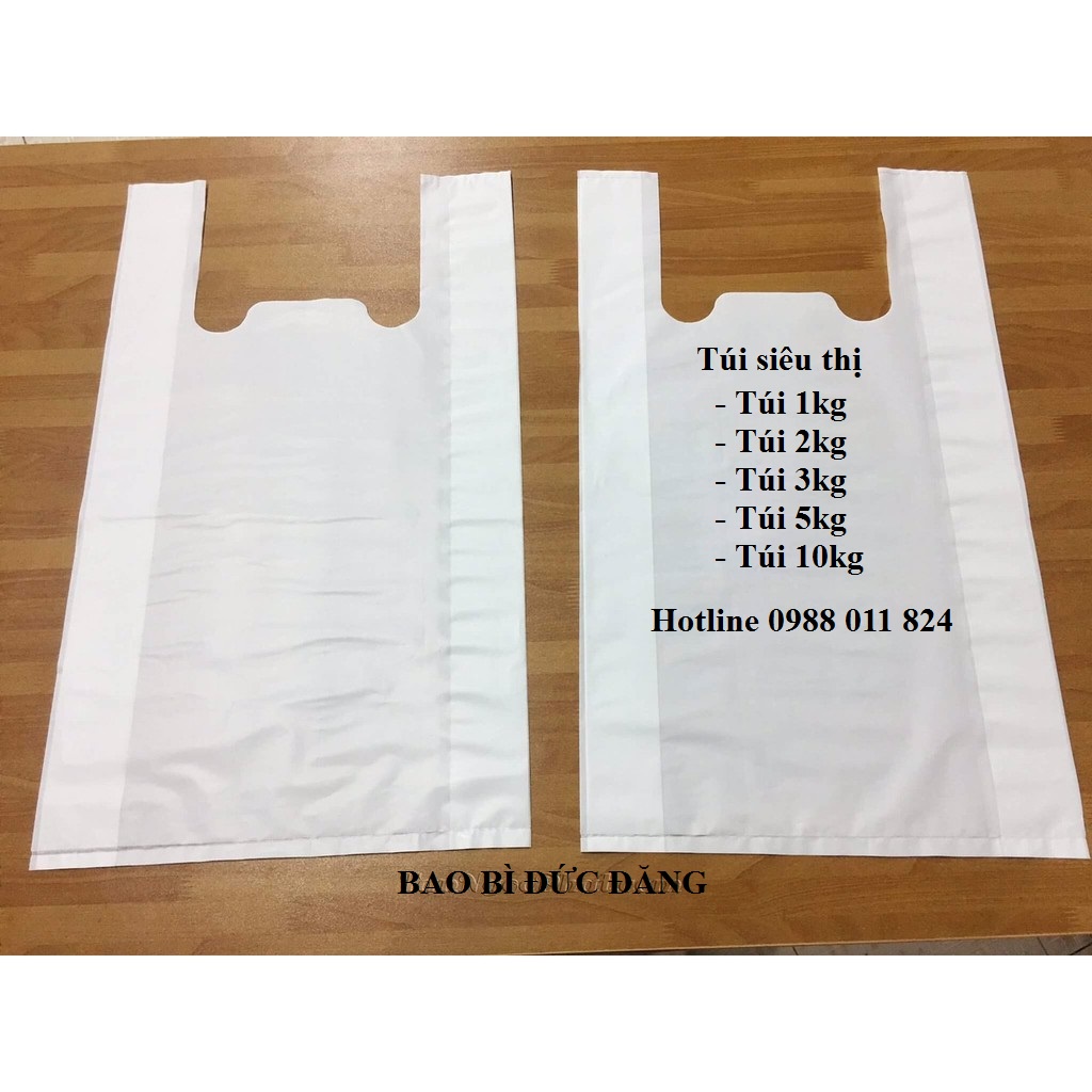 Túi trắng siêu thị trắng sữa không in, có 2 quai xáchĐặc tính: túi bền , dai, dễ phân hủy và thân thiện với mội trường