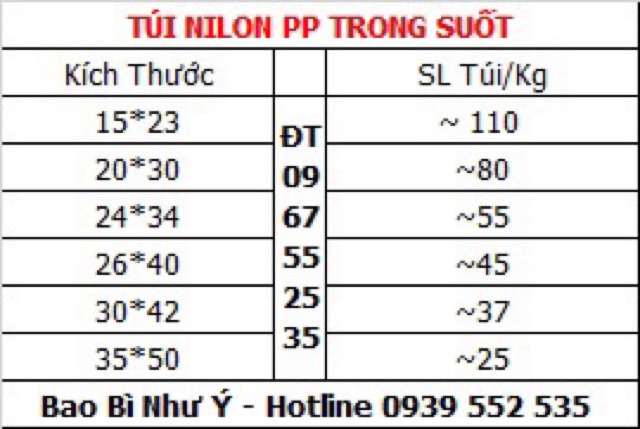 {1kg/size} túi nilon trắng trong suốt, túi PP trong- hàng đẹp có sẵn