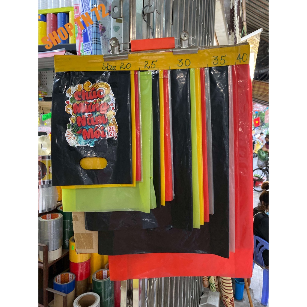 Shop TN72 chuyên cung cấp các loại túi nilon PE chất liệu bóng đẹp và cực kì dai, dày dặn. Túi đựng được nhiều đồ nặng, có quai xách không sợ đứt, ráchcác thông số túi như sau