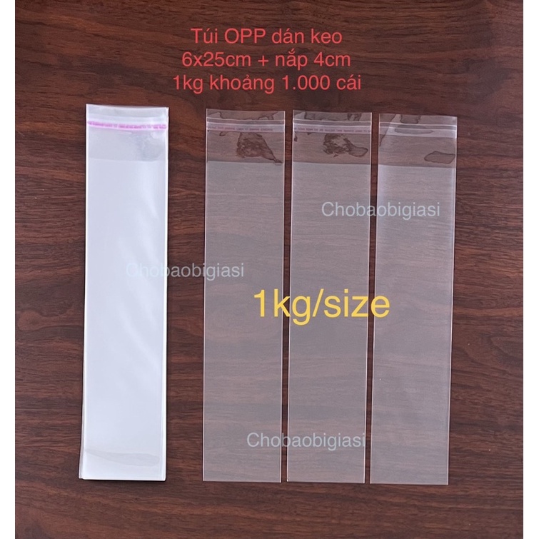 1kg Túi Opp dán keo 6x25cm + nắp 4cm (phủ bì 6x29)cm đựng đũa, muỗng, tăm, khăn giấy (sp y hình)