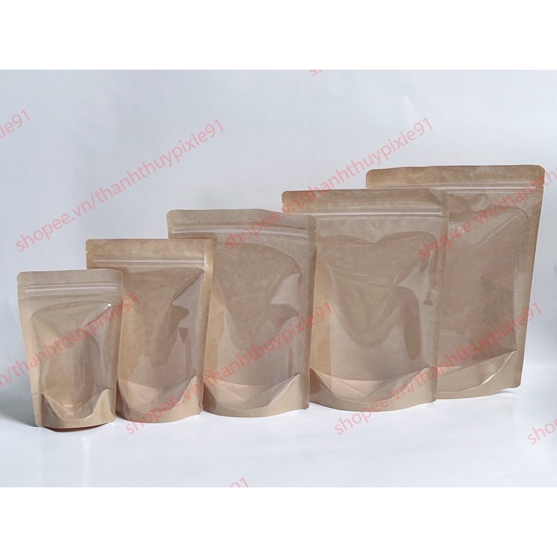 Túi zip zipper giấy kfrat đáy đứng 1 mặt trong 1 mặt giấy - nhìn thấy sản phẩm bên trong🥕 Giá bán của 1kg/size .