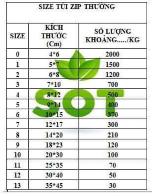 12x17cm được 280-300 túi
