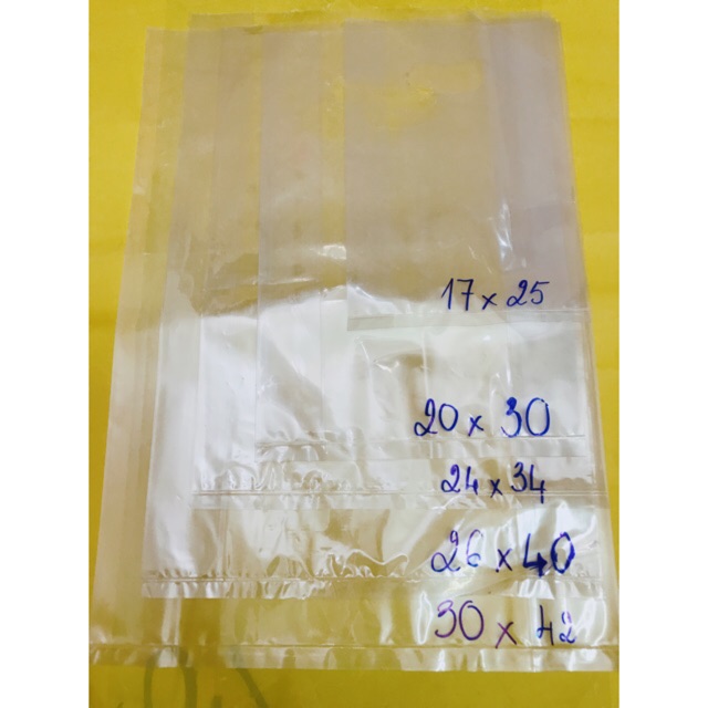 Túi nilon trong suốt cũng giống các loại túi nilon khác ngoài đặc tính trong suốt. Khi đựng quần áo, giấy tờ, hồ sơ trong túi thì nhìn thấy sẽ sang trọng hơn. Cũng chính vì lý do đó nên giờ túi nilon trong suốt càng được mọi người săn .Kích thước: 20*30 cm, 24*34 cm, 26*40 cm, 30*42 cm,