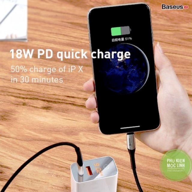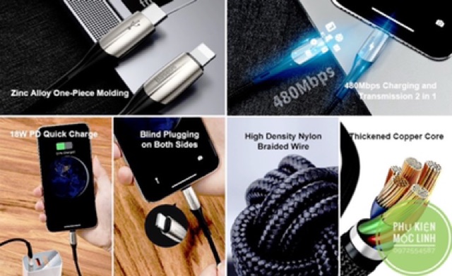 - Chuẩn sạc nhanh Power Delivery (PD Fast charge) có công suất lên đến 18W cho tốc độ sạc nhanh hơn 30% - 40% so với các loại cáp thông thường mà vẫn an toàn cho thiết bị của bạn. Có thể đạt 50% dung lượng pin chỉ sau 30 phút sạc.