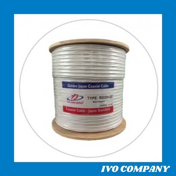 1m Cáp Đồng Trục Liền Nguồn Camera RG59+2C-CCS GOLDEN JAPAN (Màu Trắng) 128 Tim