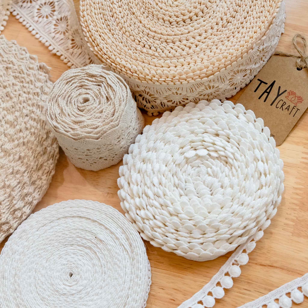Sở thích & Sưu tầm > Dụng Cụ May Vá || 1m dây vải ren 100% cotton nhiều mẫu dùng trong may mặc, trang trí quần áo, làm đồ handmadeCòn hàng