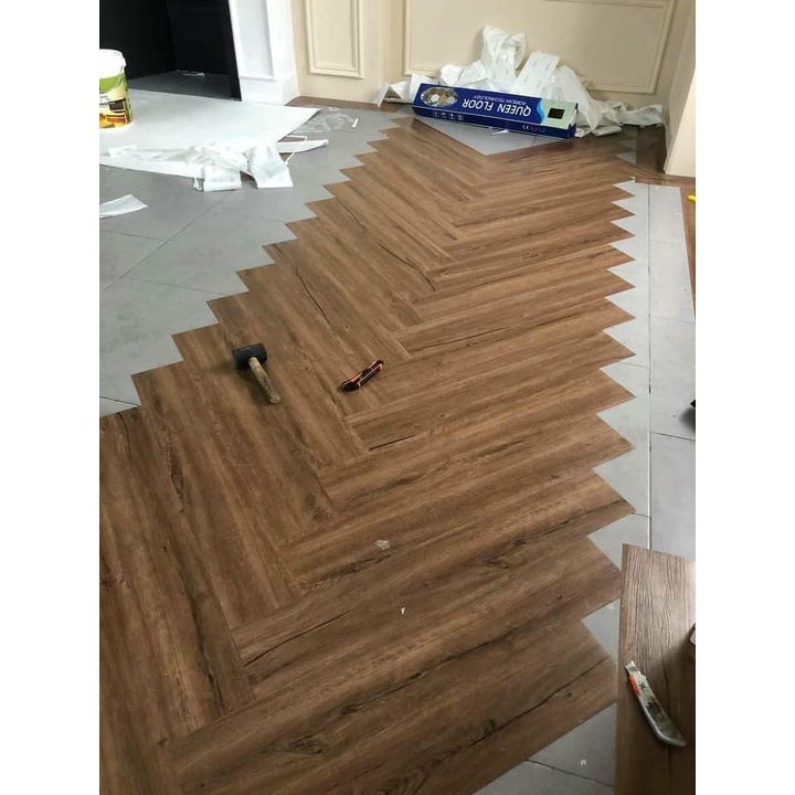 Sàn đã có sẵn keo dán 3 lớp. Chỉ cần bóc và dán, rất đơn giản..