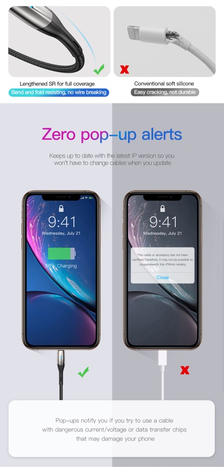 ✅Hỗ trợ dòng lên đến 2.4 A , cho tốc độ sạc nhanh hơn 30% - 40% so với các loại cáp thông thường .