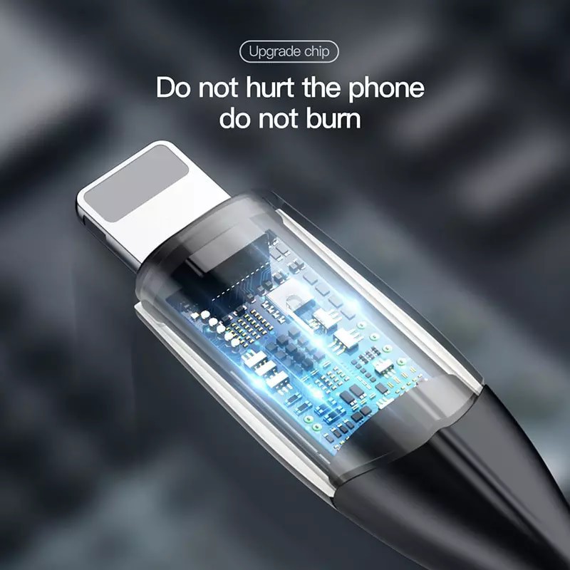 Ngoài hệ thống hỗ trợ sạc nhanh 2.4A, cáp được gắn 01 chip xử lý thông minh. Nó chủ động xử lý khi có hiện tượng quá tải, nóng cháy. Khả năng này của cáp giúp bảo vệ tuổi thọ Pin và các linh kiện của thiết bị cũng như sự an toàn cho người sử dụng.