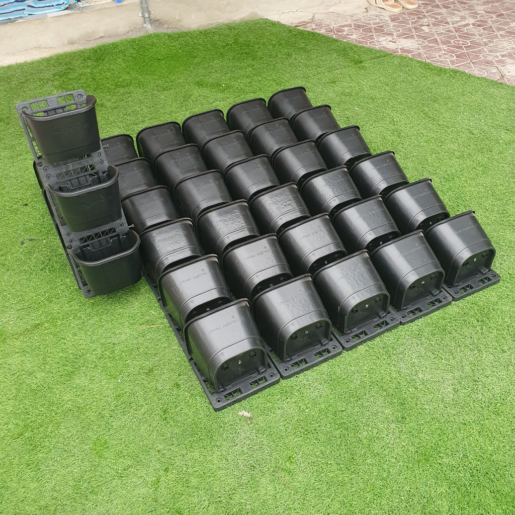 • Định mức 1m2: 36 chậu và 12 khung đỡ nhựa, hoặc 24 chậu và 4 khung đỡ thép.