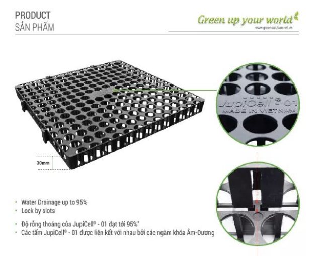 Giới thiệu [1m2] VỈ THOÁT NƯỚC NGẦM JupiCell-01: Chuyên dùng thoát nước bồn cây trông, vườn trên mái.