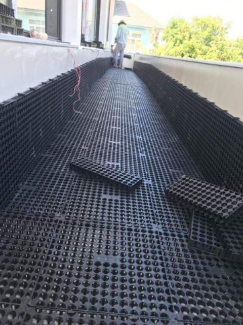 4: JupiCell: Chống ngập úng cho sân thượng và giữ nước tưới cây. Tấm thoát nước được làm bằng nhựa cứng, trọng lượng nhẹ, độ thông thoáng lơn cho phép lưu thông một lượng nước thoát qua.