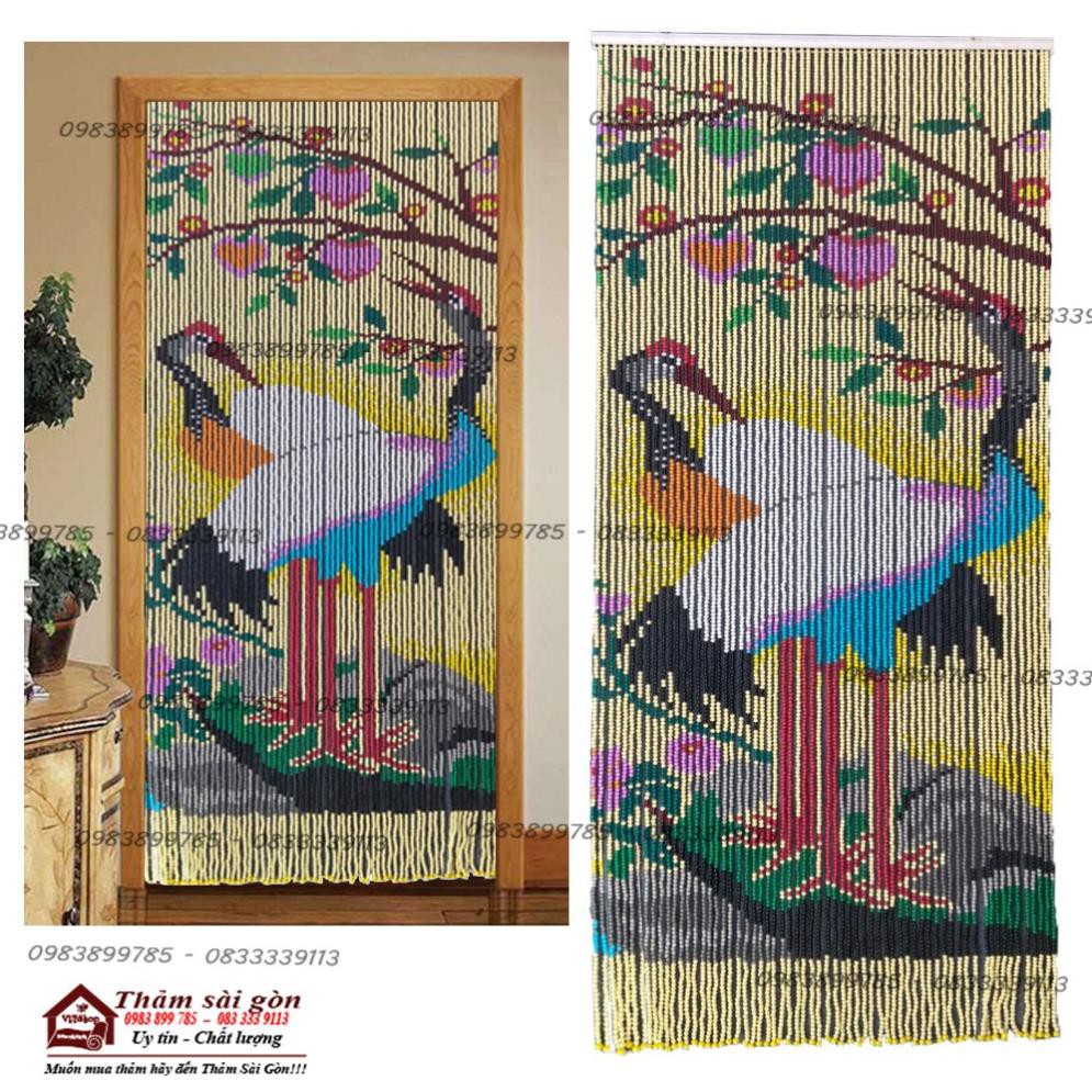 Giới thiệu [1mx2m] Màn Hạt Nhựa Hạc Đào Nền Kem, Rèm Hạt Nhựa, Mành Hạt Nhựa.