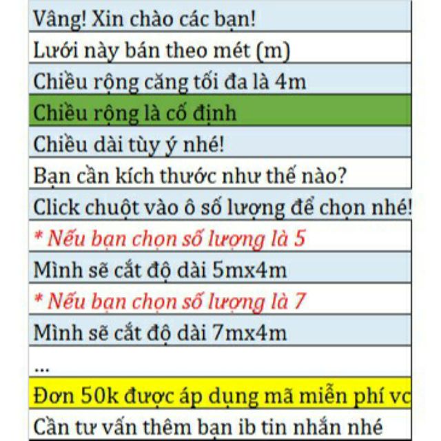 Lưu ý: lưới đã cắt vui lòng không hủy đơn hàng. Xin quý khách cân nhắc.