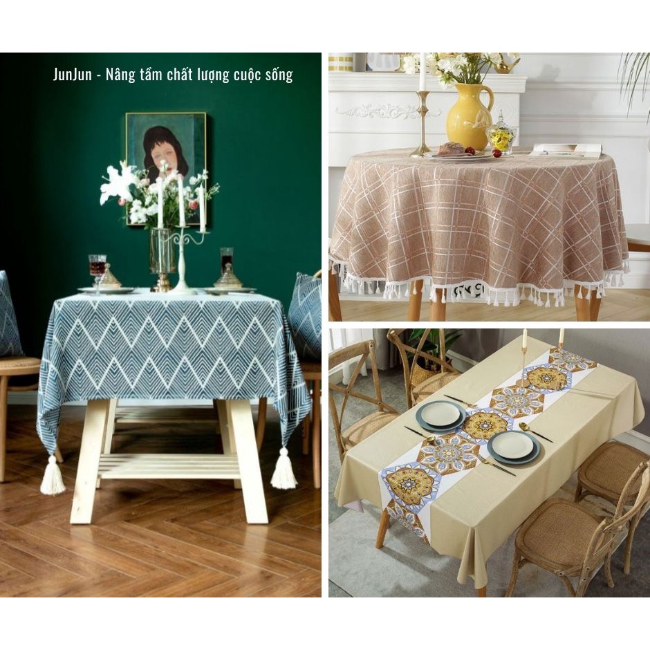 -Khăn trải bàn vải sợi dòng cao cấp cotton pha lient phong cách Bắc Âu