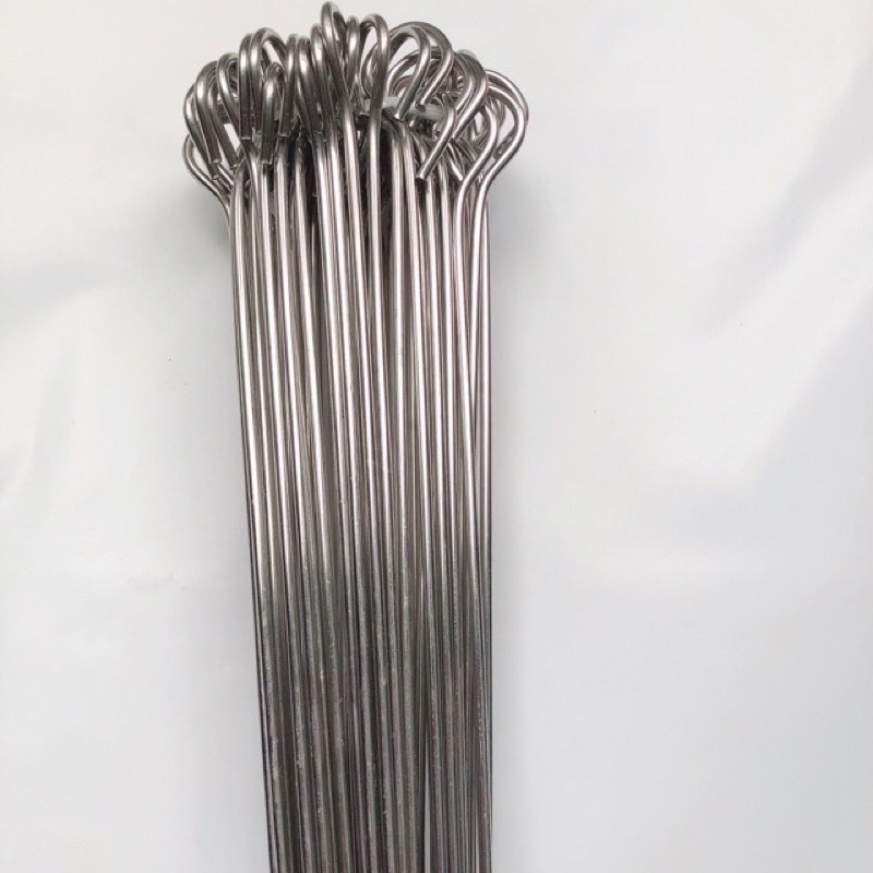 Nhà em bán loại xiên nướng thịt bằng inox dày 4mm cực kỳ cứng cáp, dài 60cm nên thoải mái nướng mà ko lo bỏng tay luôn ạ.