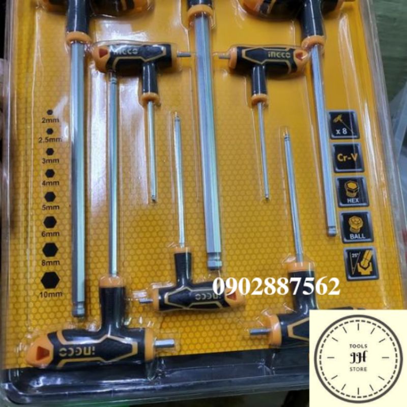 Nhà cửa & Đời sống > Dụng cụ & Thiết bị tiện ích > Dụng cụ > Bộ cờ lê || 2-10mm Bộ lục giác chữ T Ingco HHKT8082 (đầu bi)Còn hàng