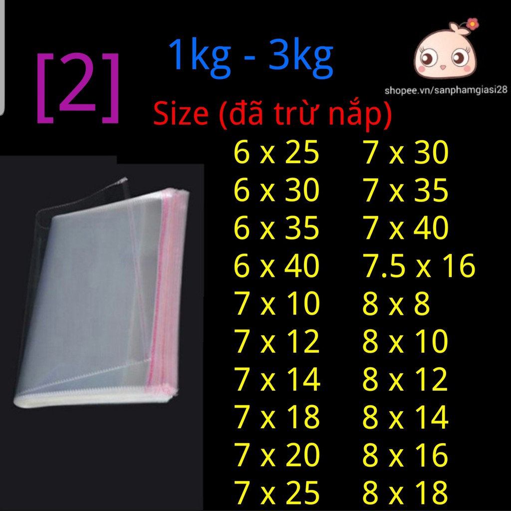 Giới thiệu (2) 1kg - 3kg Túi bóng kiếng OPP trong có keo dán SIZE NHỎ (Có 6 bài đăng cho đầy đủ size)