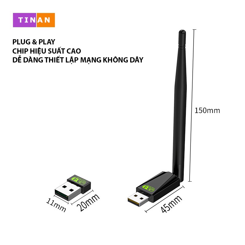 [2.4GHz/150Mbps] Thiết Bị Chuyển Đổi Nhận WI-FI Mạng Không Dây Đầu Cắm USB 2.0