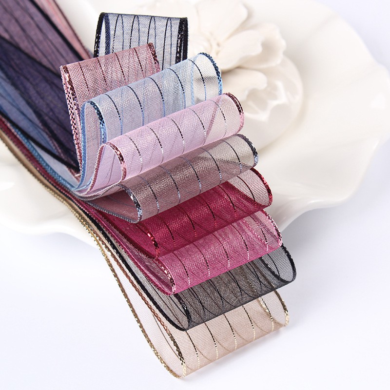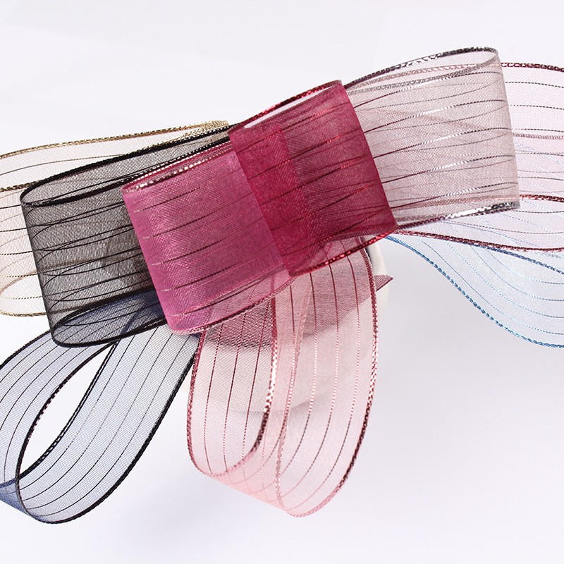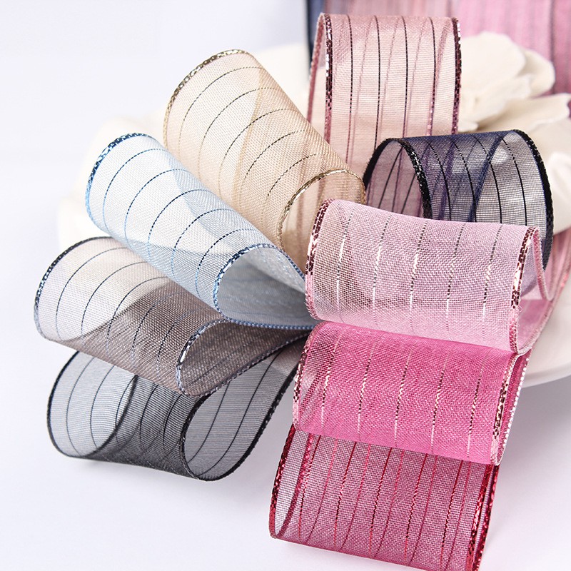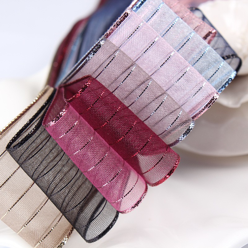 Nhà cửa & Đời sống > Trang trí nhà cửa > Hoa trang trí || 2.5cm ruy băng voan chỉ sọc lấp lánh cao cấp phụ kiện đồ handmade nơ bờmCòn hàng