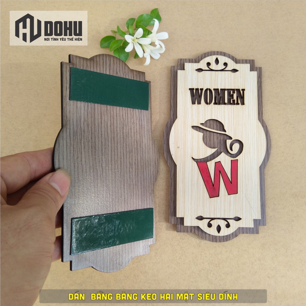 Bộ 2 Bảng Toilet Men Women Bằng Gỗ Cắt Laser 2 Lớp [DOHU333] Có Sẵn Băng Dính 2 Mặt Phía Sau Dán Tường