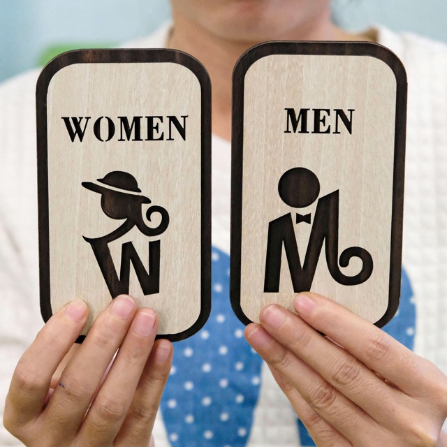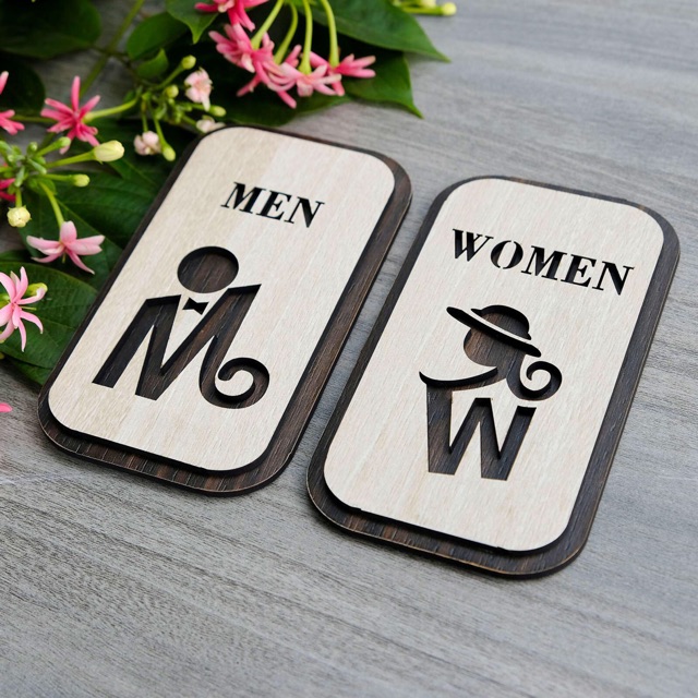 Bộ 2 bảng toilet Nam Nữ bằng gỗ giá rẻ TL09
