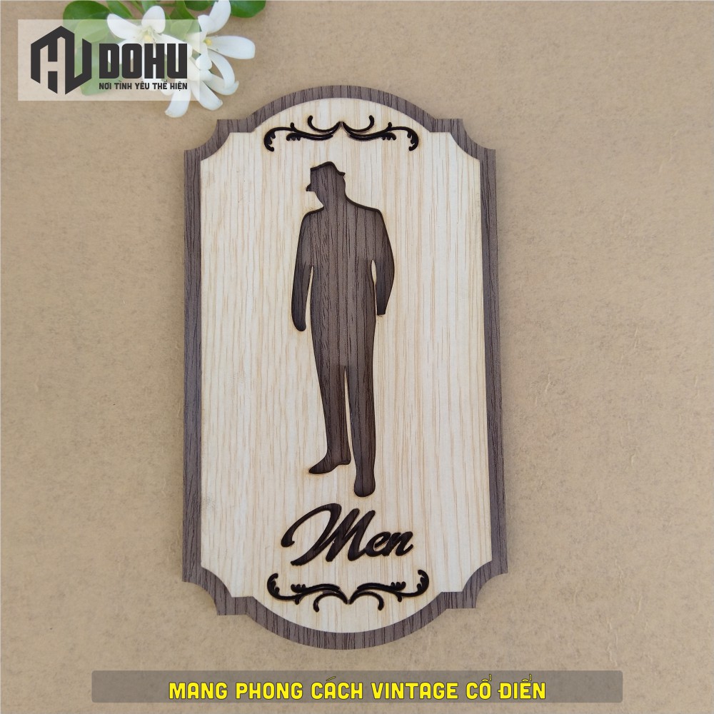 Bộ 2 Bảng WC Men/Women Bằng Gỗ [DOHU334] Thiết Kế Vintage Sang Trọng - Có Sẵn Băng Keo 2 Mặt Phía Sau Dán Tường