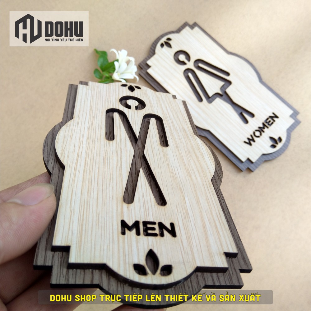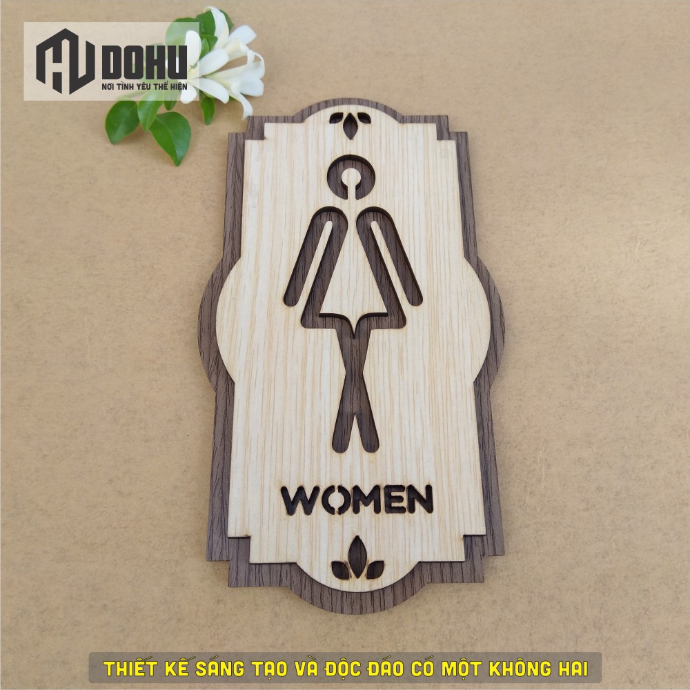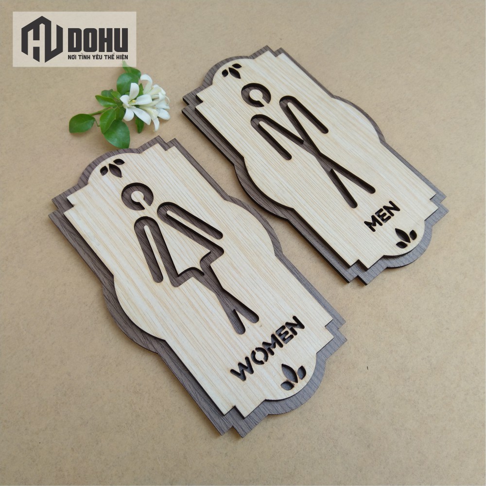 Giới thiệu Bộ 2 Biển Gắn Nhà Vệ Sinh Men Women Bằng Gỗ [DOHU334] Thiết Kế Vintage - Có Sẵn Băng Keo 2 Mặt Phía Sau Dán Tường