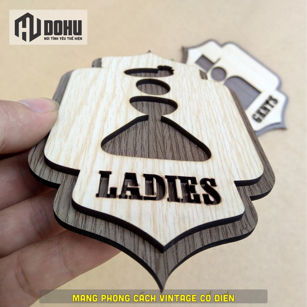 Giới thiệu Bộ 2 Biển Nhà Vệ Sinh Ladies and Gents (Nam và Nữ) [DOHU336] Phong Cách Vintage Sang Trọng - Có Sẵn Băng Keo 2 Mặt