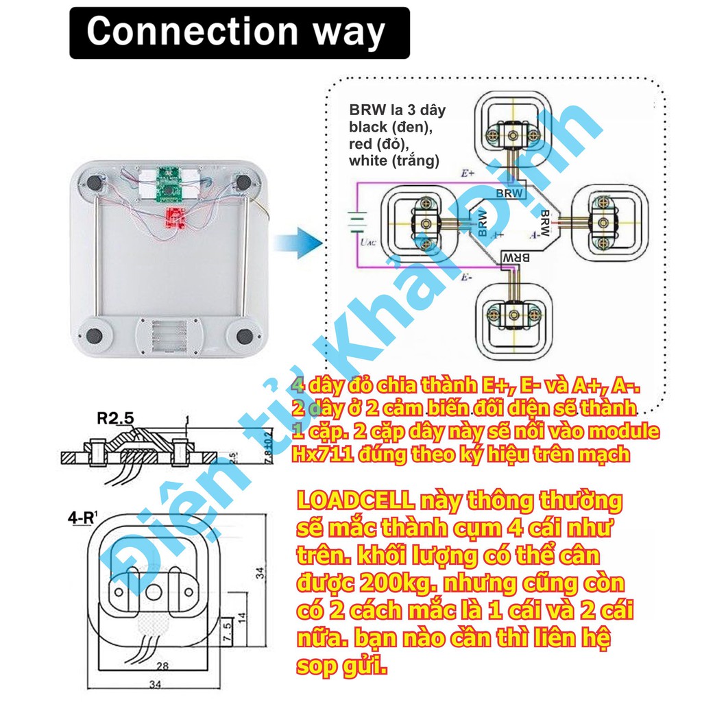 Giới thiệu 2 cái Cảm biến cân nặng trọng lượng LOADCELL 50kg YZC-161B 5Vdc kde6364