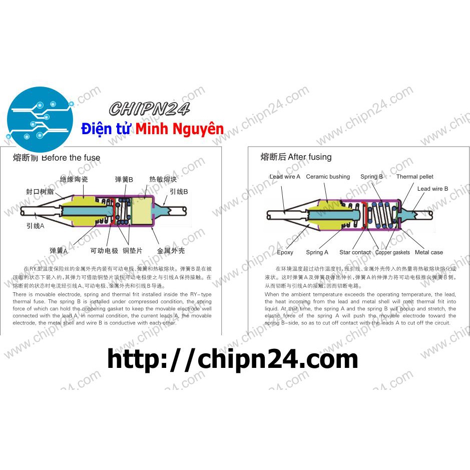 Giới thiệu [2 CÁI] Cầu chì nhiệt RY 200 độ 10A 250V (RY-200 TF200)
