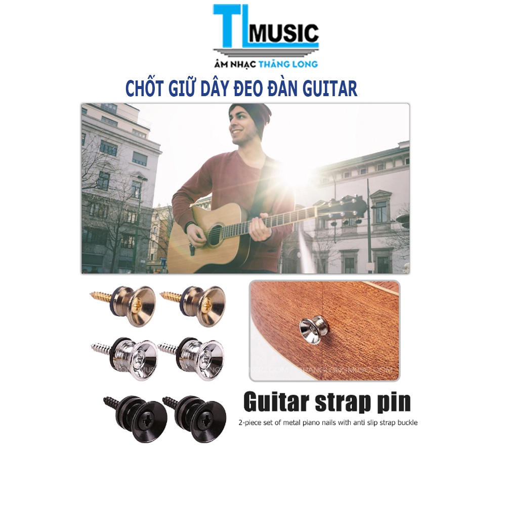 - Chốt gắn dây đeo cho Guitar chất liệu kim loại cao cấpChốt gắn dây đeo đàn giúp bạn giữ cây đàn được chắc chắn hơn, chống trầy xước đáy thùng đàn, ngoài ra dây đàn có thể lắp và mở ra tuỳ ý!