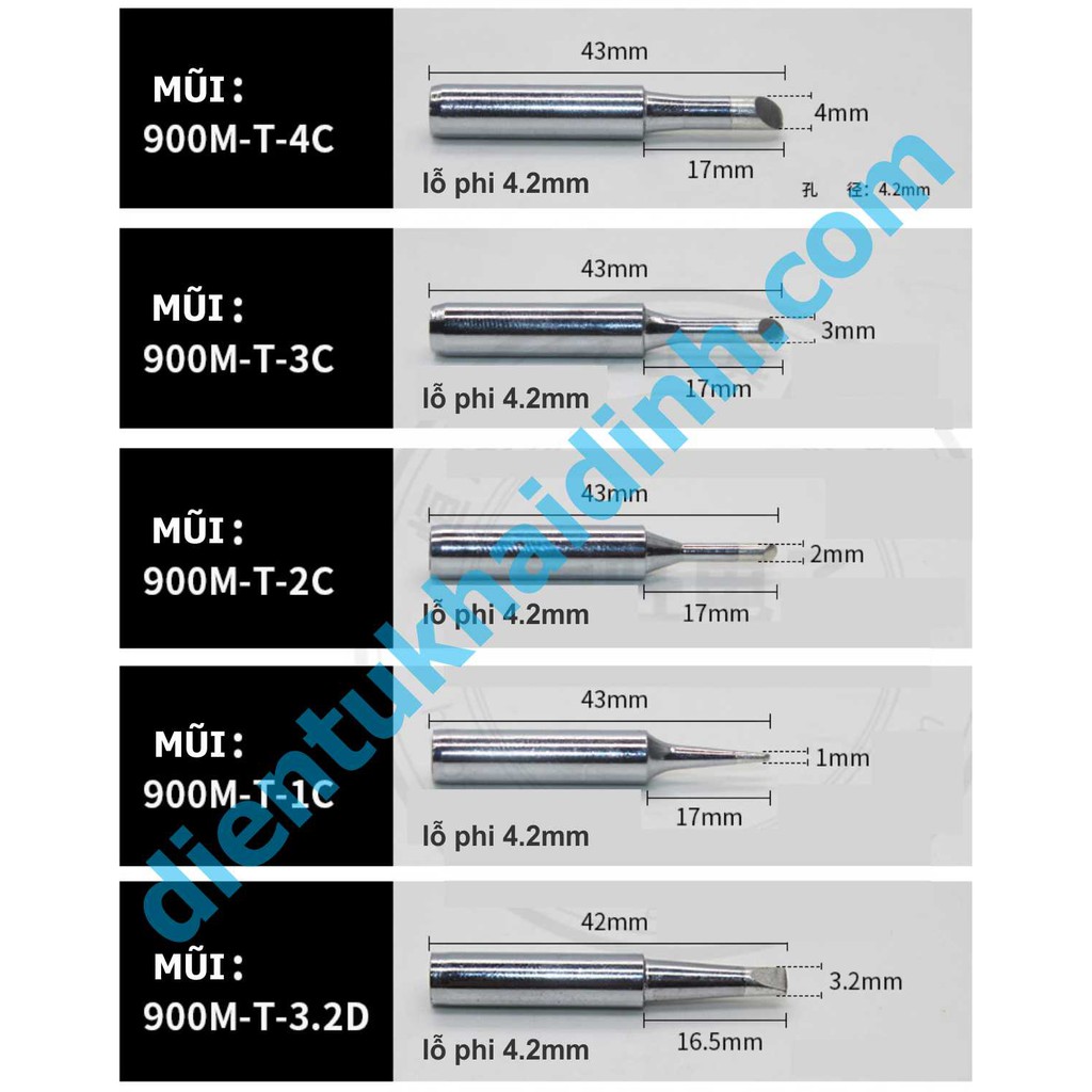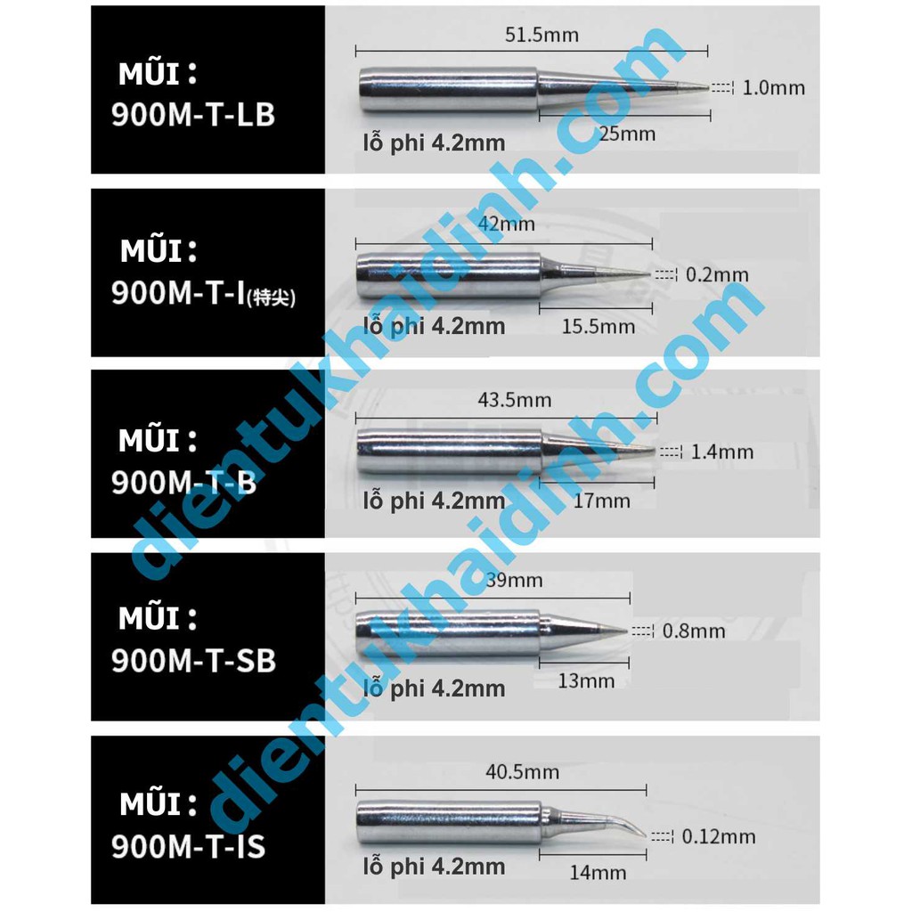 Giới thiệu 2 cái Đầu Mũi mỏ hàn HAKKO 900M-T D K C B I dùng cho tay hàn, trạm hàn 936 907 103T kde2390