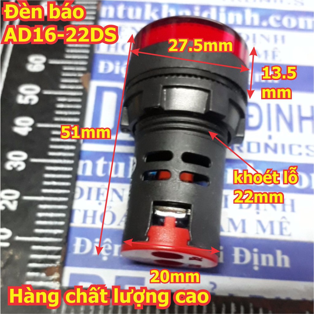 Giới thiệu 2 cái Đèn báo có điện áp, đèn báo nguồn, LED, AD16-22DS, điện áp 380Vac kde5514