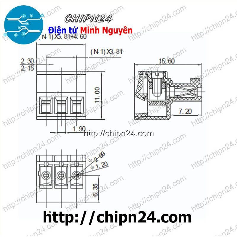 Domino 15EDG3.81 CON3 CONG 3P 3 Chân (Terminal 3.81mm)Domino 15EDG3.81 CON3 CONG 3P 3 Chân (Terminal 3.81mm)