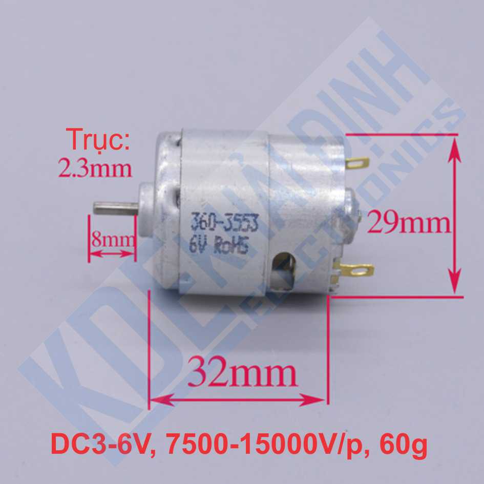 Giới thiệu 2 cái động cơ DC RS-360 3V7500V/phút, 6V15000V/phút, tản nhiệt trục 2.3mm kde2569