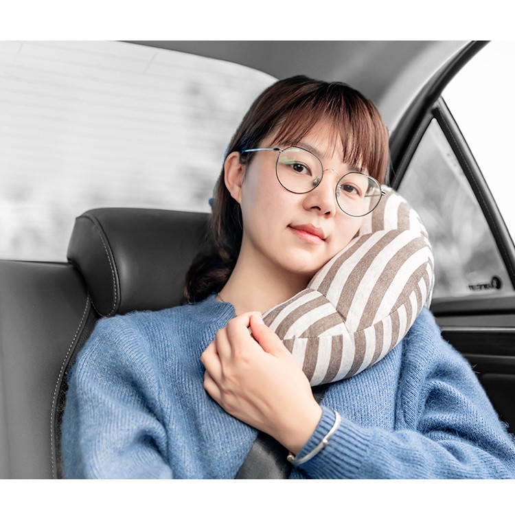 Bộ 2 Cái Gối Bông Kid Sleep In Car ( Nâu Trắng ) - Home and Garden