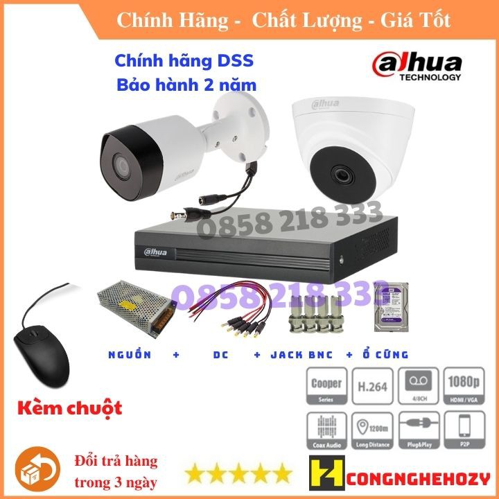 Bộ 2 camera đầu thu Dahua 2.0mpx FullHD 1080p tặng kèm 30m dây , cắm điện là dùng BH24 tháng