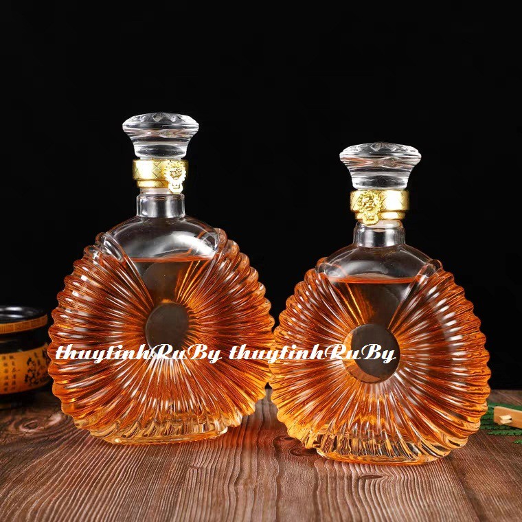 Chai Thủy Tinh Đựng Ruou XO 750ml được thiết kế kiểu dáng cao cấp, sang trọng, thủy tinh trong suốt nổi bật được bình đựng rượu ngâm bên trong.