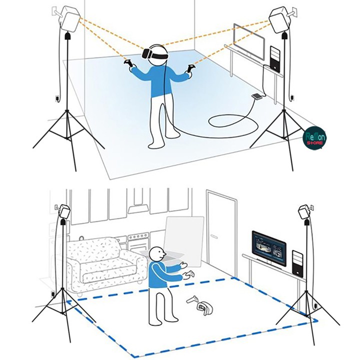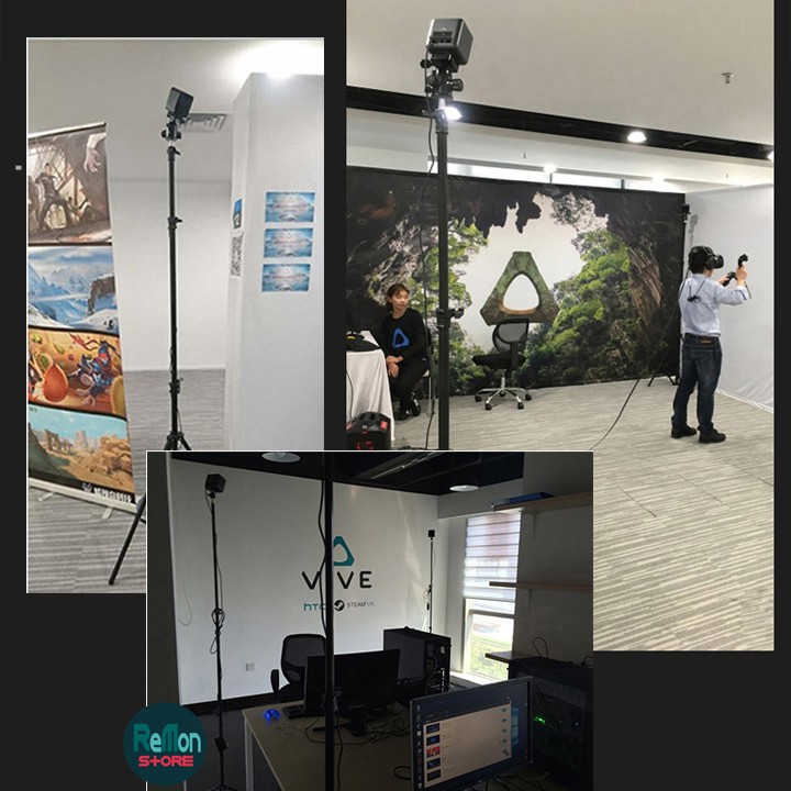 - Trọn bộ gồm 2 Chân đứng nhôm cao 2.9m đầu kim loại xoay đa chiều cho kính thực tế ảo HTC VIVE.