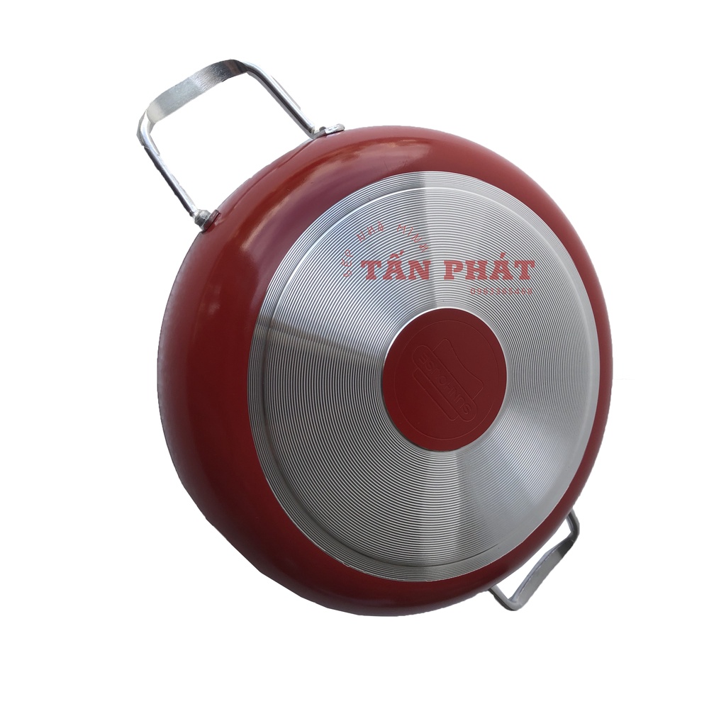 Vỏ ngoài chảo được sơn một lớp chịu nhiệt màu đỏ mận, chống bám bụi, hạn chế trầy xước, dễ dàng vệ sinh, tăng thẩm mỹ cho chảo.