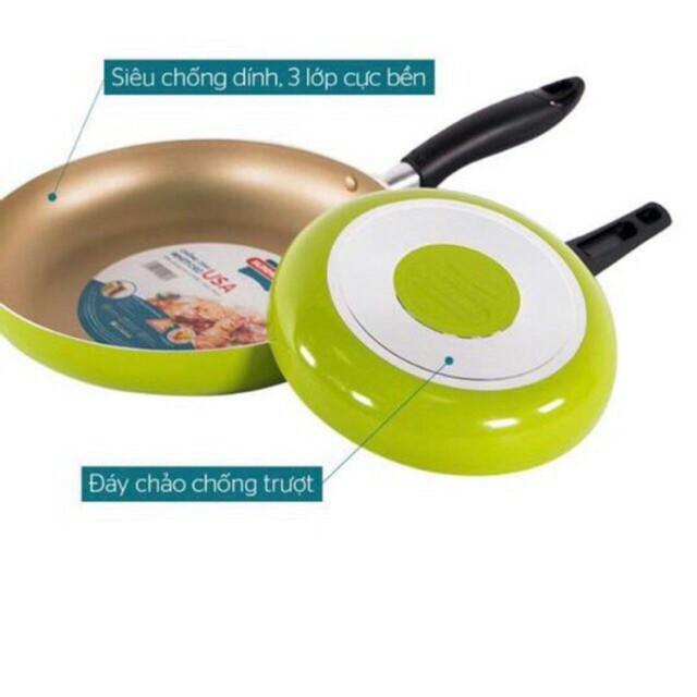 Màu sắc: Chống dính màu sampanh & Thân chảo sơn chịu nhiệt màu xanh lá