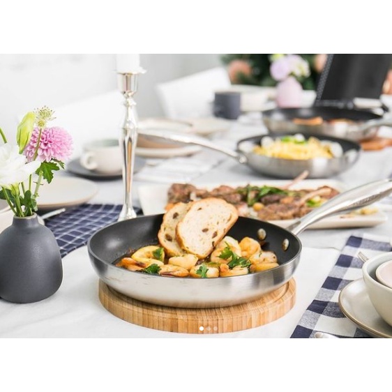 Chảo chống dính Scanpan CTX được thiết kế bên ngoài bằng inox mờ sang trọng, kiểu dáng đẹp mắt giúp không gian bếp nhà bạn thật hiện đại và phong cách.